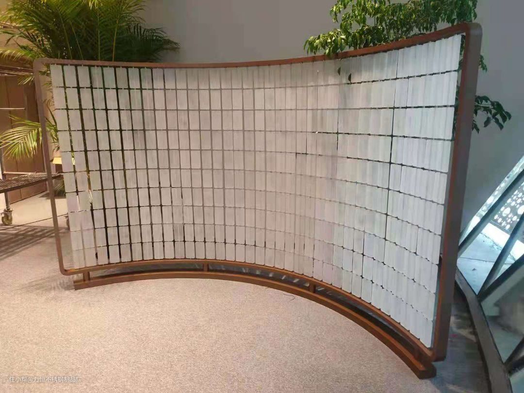 5月份我们做了一款不锈钢结合亚克力的屏风。亚克力通透的光学美感,结合不锈钢金属,凸显纯净冰冷的感官享受。整个屏风的设计不是很复杂,就是以不锈钢为框架底座,搭配亚克力片为结构面。同时整个保持着非常平整规则的形状,不锈钢搭配亚克力的折射特性,在视觉上能更加的凸显亚克力及不锈钢的质感和美感。