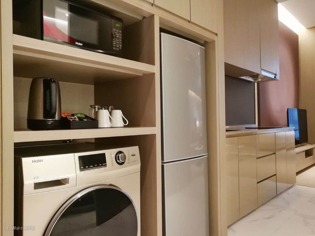 需要注意的是,厨房里有许多高温的东西。比如燃气灶、蒸烤箱、消毒柜、洗碗机等等,这些东西和冰箱之间,需要保持一定的距离,不能紧贴着摆放。一来是因为高温会影响冰箱散热;二来是冰箱的侧壁就是薄薄的金属板,如此高温下容易被烤坏。