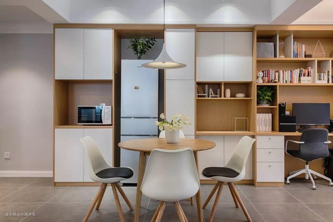 最常见的位置,就是餐厅了。餐厅里摆放冰箱,餐桌上的剩菜可以直接放进去,从冰箱里拿出来的凉菜也可以直接端上桌。同时餐厅距离客厅往往比较近,夏天喝点凉饮料,吃根雪糕,拿取的时候也比较方便。