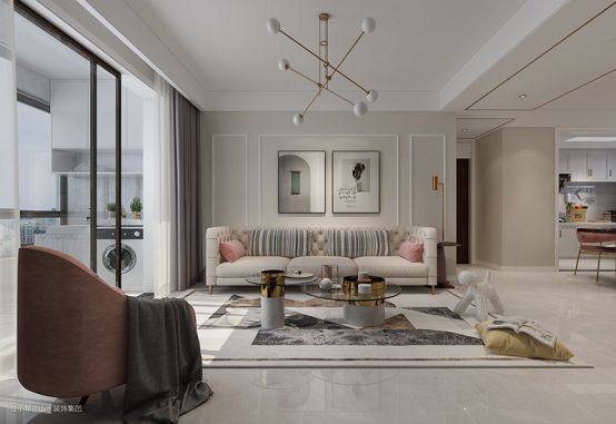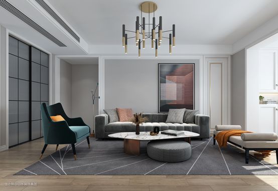 轻奢风格普遍受到中产阶级的青睐,在强调简洁的基础上,通过加入金属、镜面、丝绒等自带高级感的元素,以表现空间的轻奢品质,彰显居者的高雅品味与格调。