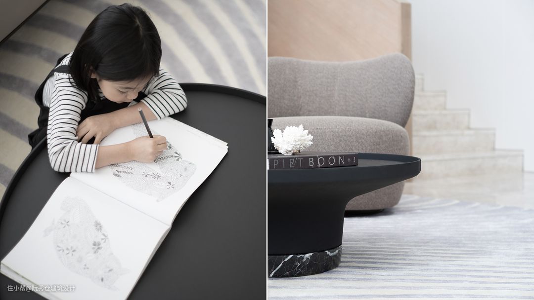 为了保持空间的通风和透气,空间多采用米色、白色、黑巧克力色和木炭色调的家具、配件以及Walter Knoll和Flexform等品牌的现代家具,为空间提供视觉上舒适的衬托。
