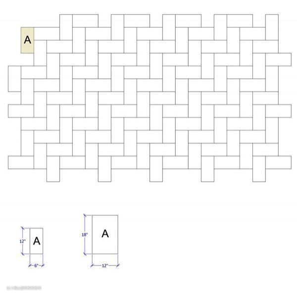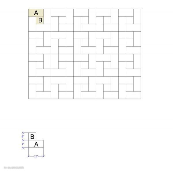 可以用两种或者多种不同颜色的瓷砖拼,比较复古的一种铺贴方式。一定要注意正方形和长方形的尺寸。长方形的长边必须为宽的2倍,正方形边长必须与长方形的宽尺寸一致。