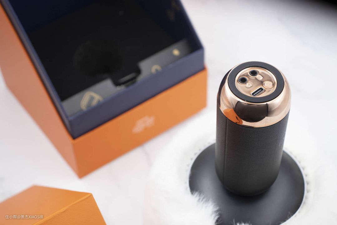 唱吧小巨蛋G3是一个能唱能放的蓝牙音箱,外形很有设计感,潮酷的英伦格调,时尚大方,很有辨识度,整体分为两个部分,其中出声孔区域加上了一个雪白的毛绒风罩之后,显得特别的可爱,触感上非常柔顺舒适。手柄采用了皮质工艺,看起来更加高级典雅,而底部是采用了电镀工艺,色彩上会更加亮眼。