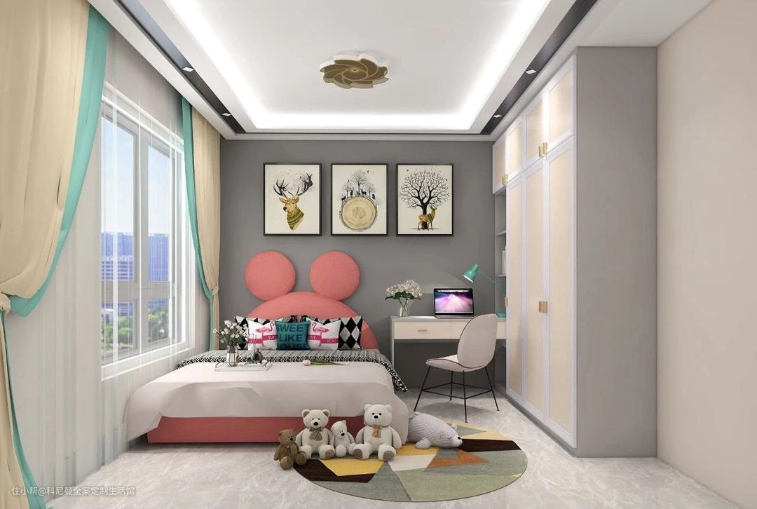 甜美有趣的女孩房,梦幻气质十足的玫瑰粉点缀 恰到好处,整个空间浪漫又高级。在这个专属天地学习、阅读、玩乐、休息,成长,是最快乐的事。