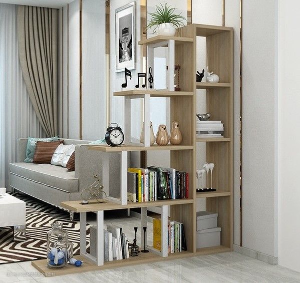 对于小公寓房来说,利用一些实用度高的方格收纳架隔断空间,杂物能有效的得到处理。