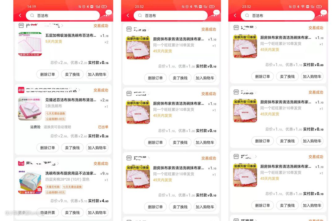 第一种:说到清洁神器,必须说百洁布,我就想说我家里堆积的几百条百洁布库存,19年某淘刚开始推签到红包,每天能签到领1块钱红包,在频道里不多款百洁布,用红包后,1-2毛钱1条保洁布包邮到家,家里三个人的账号每天都在买这些百洁布,买到最后真的很烦不想买了,就有了这几百条百洁布,已经用了三年,目前还挺多的,具体库存数量不详。