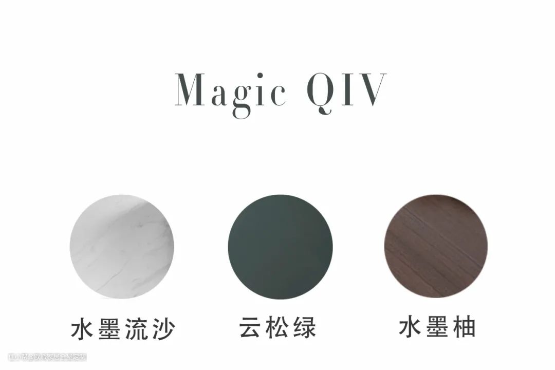 羽毛肌理的雀羽白,搭配沉稳胡桃木纹,彰显了新中式风格中轻奢淡雅的特色。