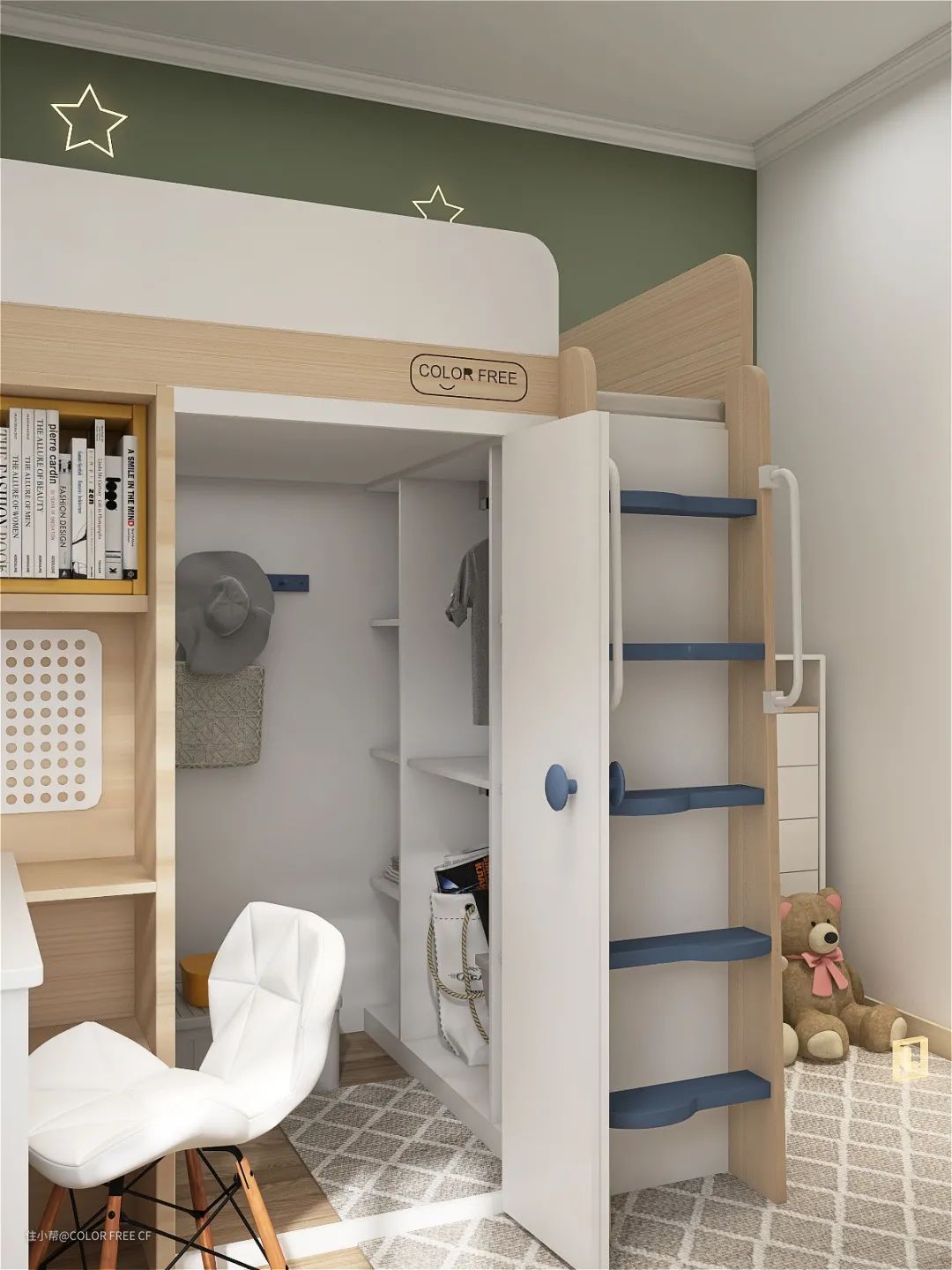 梦想伟大,我们陪你一路同行。小蓝星是一款为成长期儿童不断重构独立、乐观、坚韧信念的成长型家具,通过一件家具,解构一个空间,独立的高层休息区,独立的私属衣帽间,独立的学习区,单一空间被多层重构,儿童成长学与家具美学极致融合,共同助力孩子实现梦想!