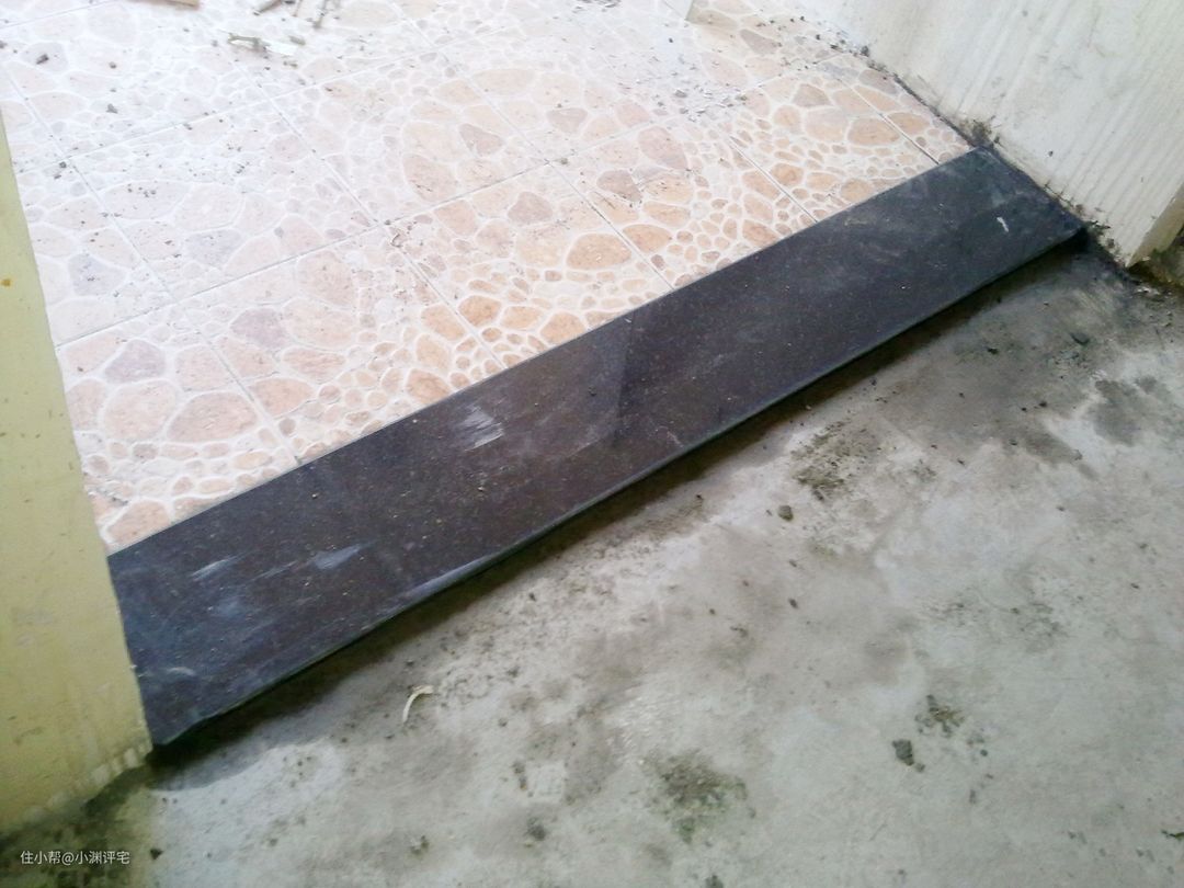 但门槛石是石头,石头的任何一个角度都不吸水。在卫生间门口使用门槛石,目的就是挡水。但是只有门槛石还不够,水会通过门槛石下面的水泥砂浆层往房间里渗——我们前面在卫生间门口涂刷的防水剂,就是在防止这个问题。