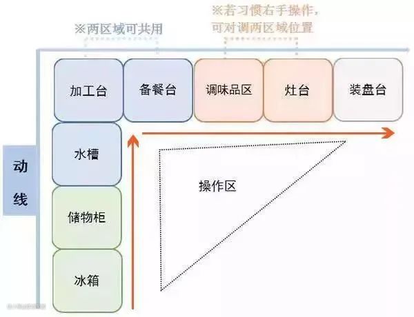 按照这个步骤进行功能区划分,决定了烹饪区、料理区、清洗区的位置,无论厨房大小,都能保证三大布局形成完美的黄金三角动线,减少不必要的走动。