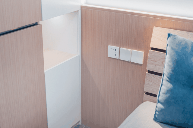床尾是半墙高收纳柜,在这还有个小惊喜。