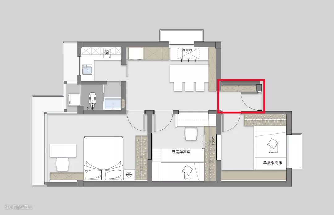 • 增加收纳空间,58㎡的房子整整设计出27m³用于收纳。