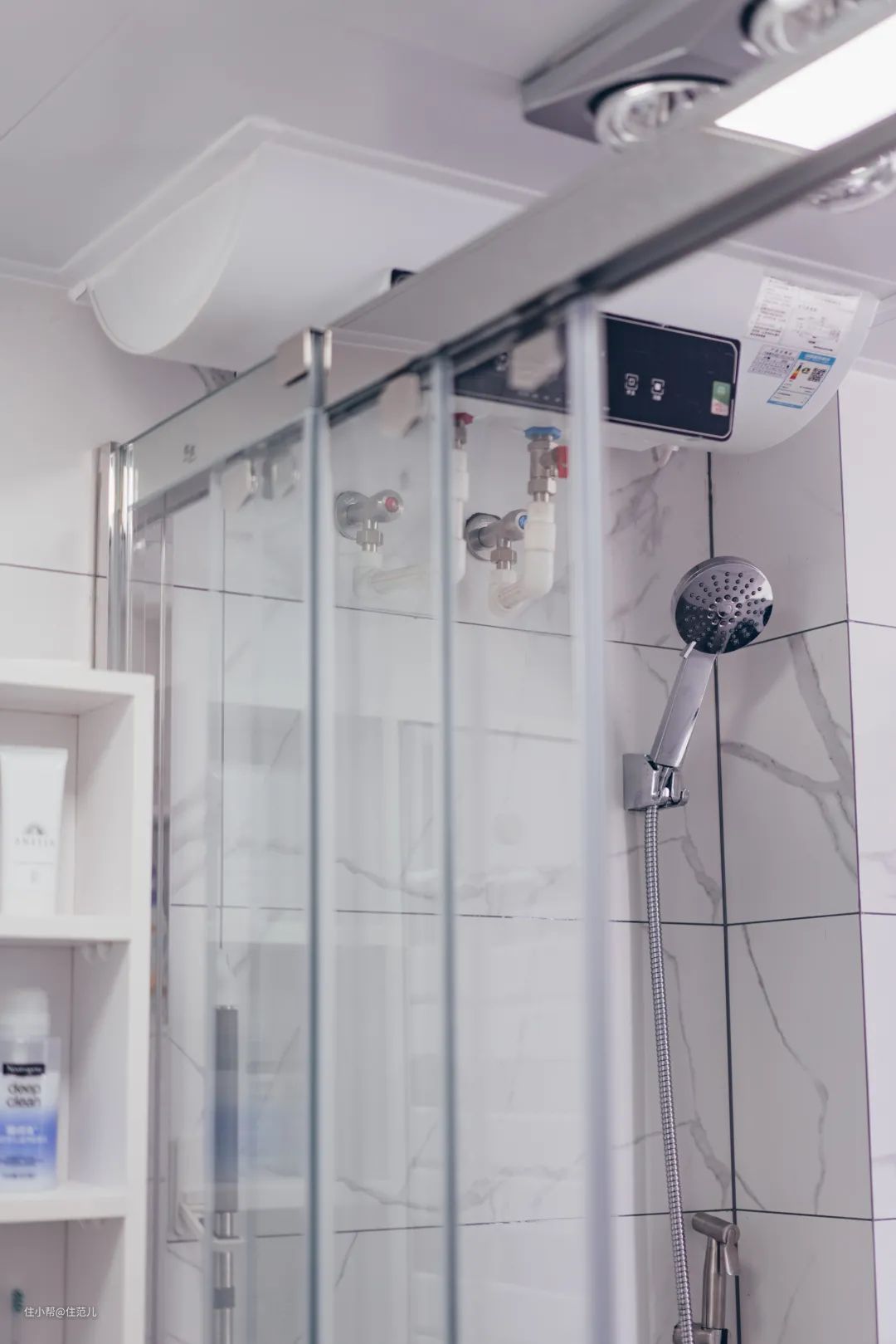 淋浴的对面墙壁同样做了壁龛设计,用来放置洗浴用品。