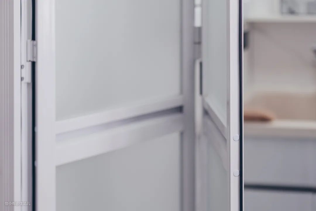 门选用的折叠式,更省空间,白色门体也与卫生间整体色调一致。