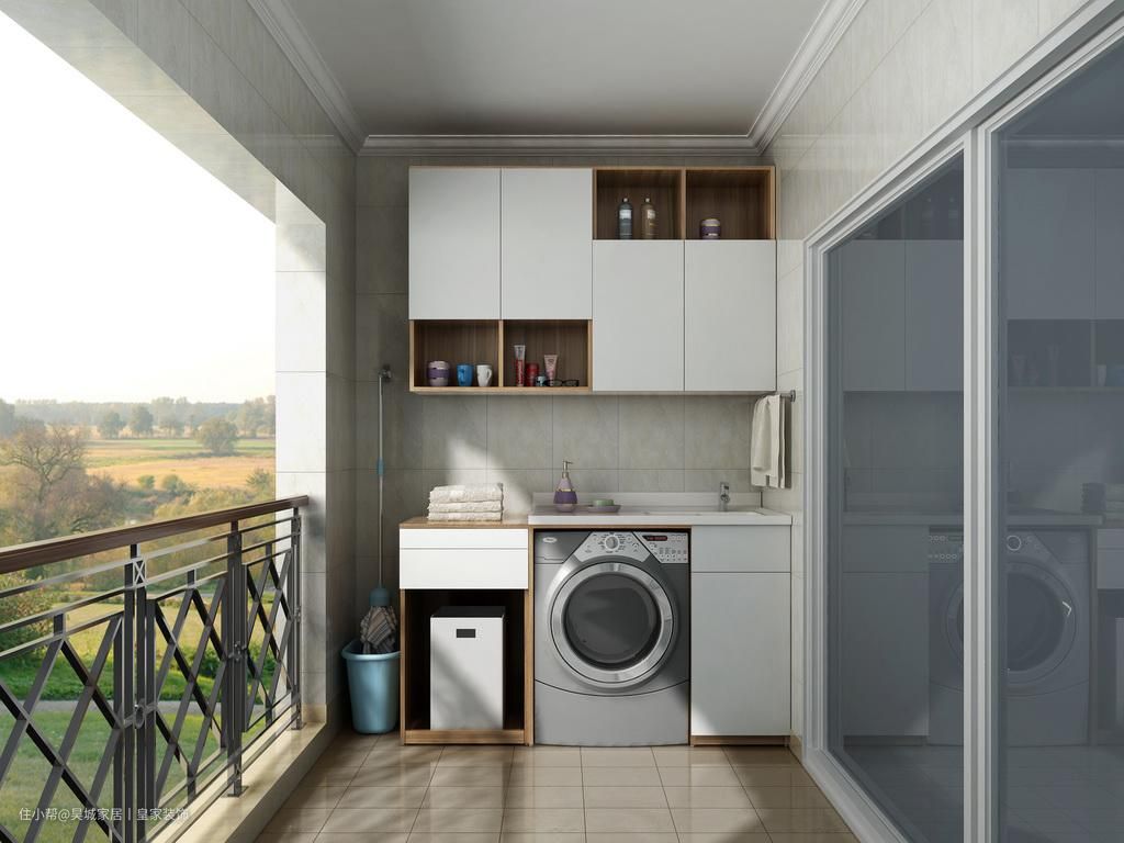 可以在这里做一个独立的洗衣台,在洗衣台上方可以安装吊柜,这样一来,不仅可以在阳台洗衣袜,还能为自己多增加一个收纳空间。若卫生间空间较小,洗衣机也能安置在阳台。