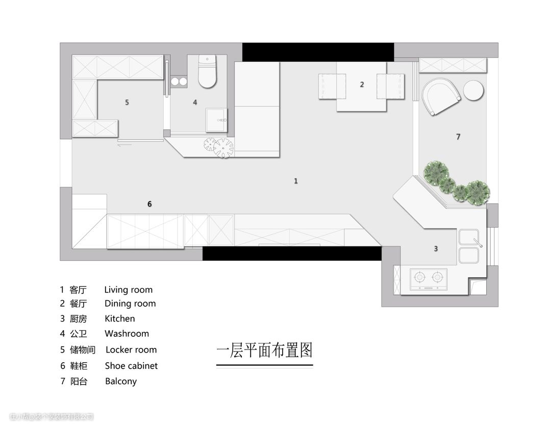 1、一层进门区域左侧空间采光通风不足;