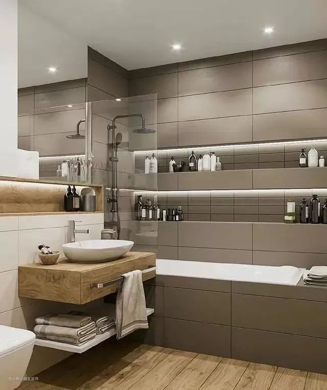 灯带还可以装在卫生间,主要也是起到氛围的作用,其实卫生间也是一个让人放松的地方,不要把卫生间装修得冷冰冰的,要适当加一些温馨感。