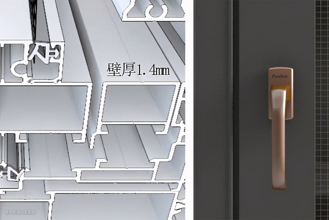 随着人们的生活质量的提高,国家对于铝合金门窗行业的标准也在不断提高,很多的门窗企业开始提高型材的壁厚。以我们这款110双平开窗为例,我们的型材用的都是1.4mm壁厚的材料,而且为了跟上市场的需求,我们正在开发2.0mm壁厚的材料。1.4mm壁厚的材料,能满足我国大部分地区的要求,对于有强台风侵袭的地区则可以选择2.0mm的,让你在台风天也能安心在家。