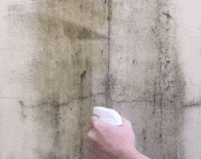 这东西本身是一个喷瓶,直接喷在霉菌表面。不用等太久,大概一两分钟,眼见着墙面上的霉菌就能消失。过程中不需要用抹布或者清水擦拭,我们只需要喷和等就够了。