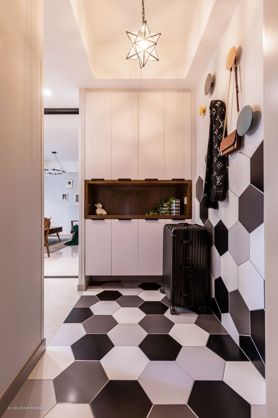 很多家庭的玄关收纳柜用于收纳鞋子,如果采用密闭设计,时间一长难免产生异味,可以合理规划透气孔,尽量保持柜体清爽。