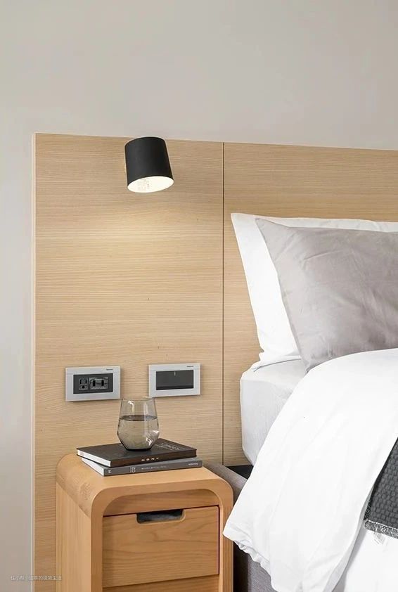 床头两侧,除了有可爱的小壁灯外,还预留了几组插座,方便屋主随心使用手机、平板等。
