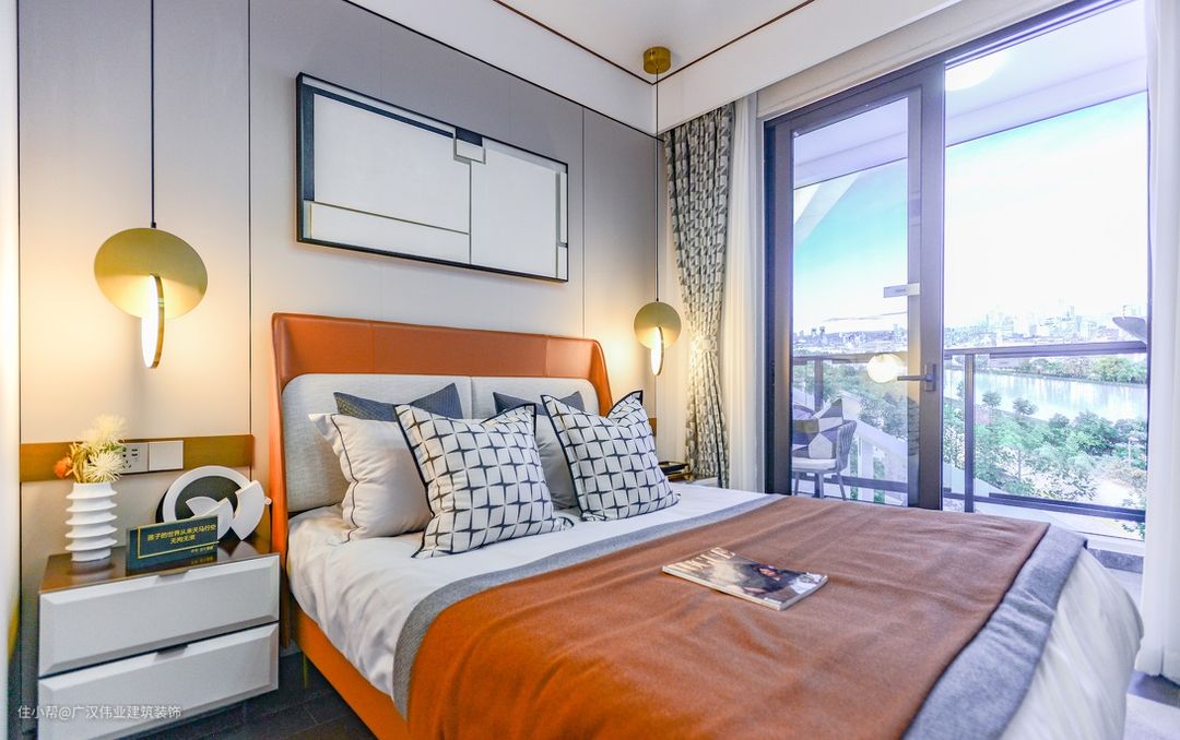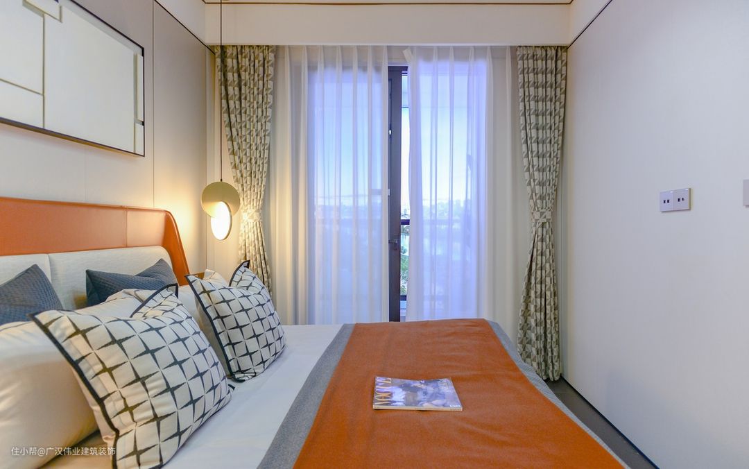 位于玄关背后的次卧,显得更加私密,可以享受到透过落地窗洒进来的阳光,和一步跨进风景露台的舒畅,作为客房或者老人房等功能房间都很惬意。