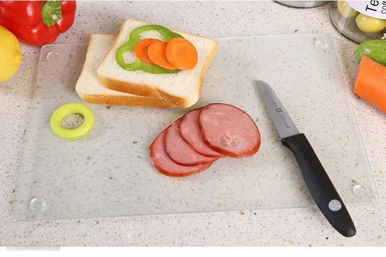 优点:玻璃砧板不像不锈钢砧板那样难闻,容易清洗,不易滋生细菌。