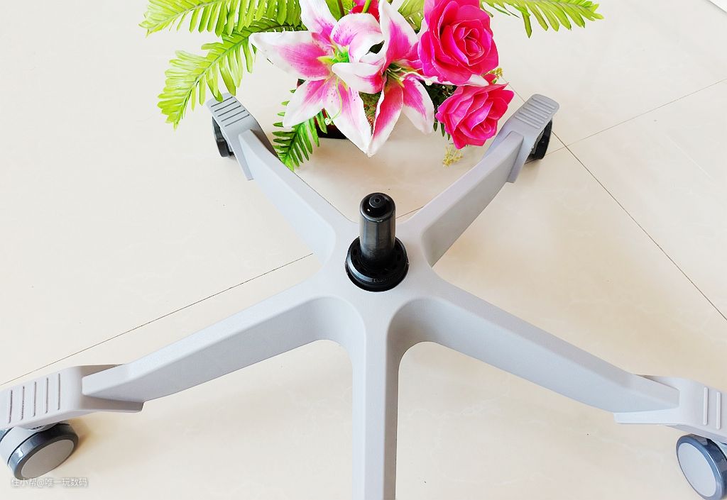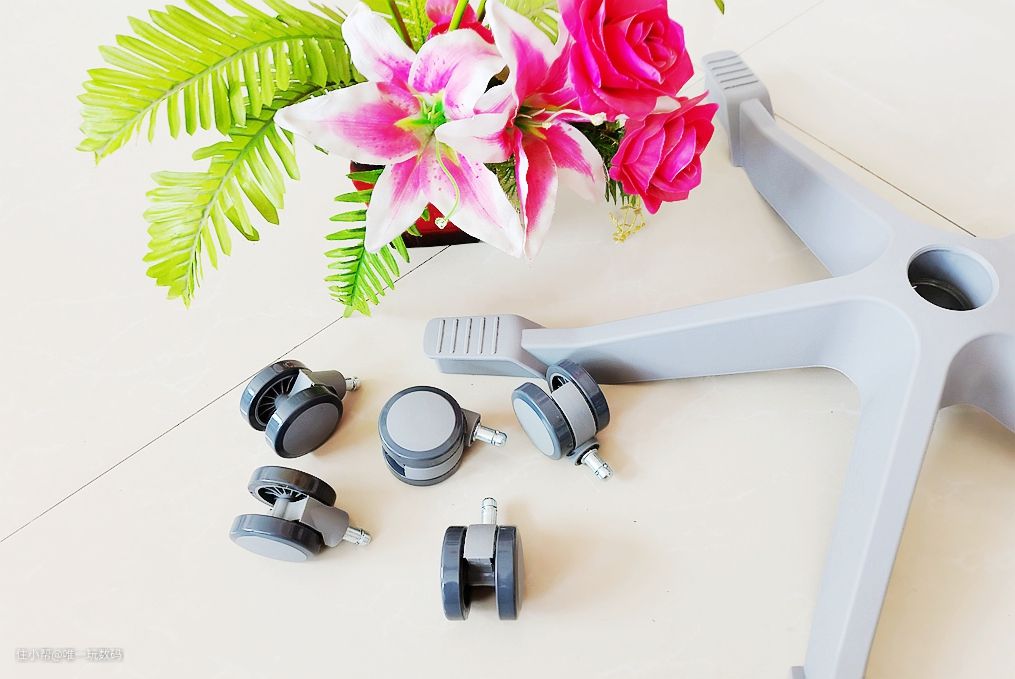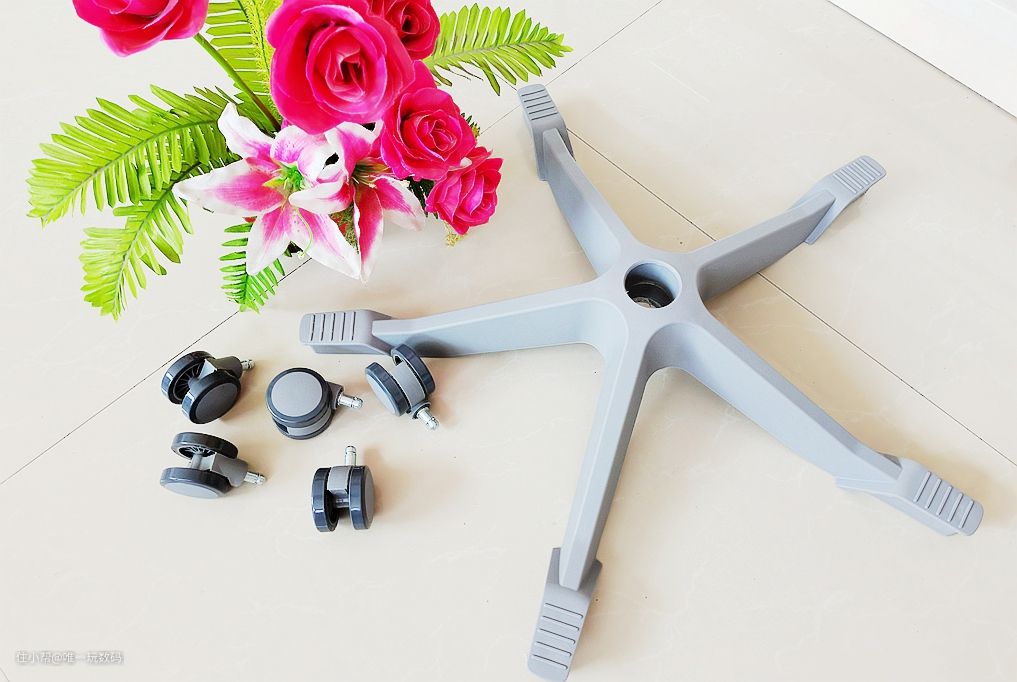 安装简单,按照安装说明书进行组装;首先将工学椅的滑轮装配到椅子脚上去,椅脚是高强度尼龙五星脚,选材加厚结构,高承重且贴地非常牢固。搭配超静音的滑轮,也不会对木地板造成划伤,旋转和滑动流畅度都不错。