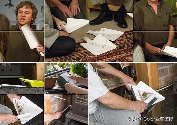 叠纸扫把的灵感取自于我们日常的折纸游戏,平时扫把和簸箕像平面一样悬挂在角落,不占空间。