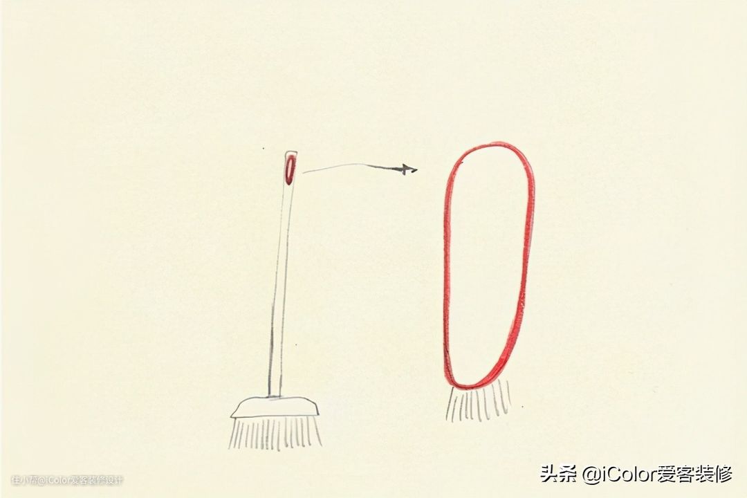 设计师的灵感取自于传统扫把上的挂钩拉环,索性把拉环部分做到了最大,远远看着这个“环形”扫把,有种惊喜且怪诞的风格。