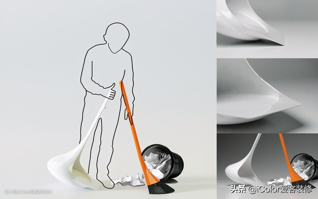 乍一看,扫把和簸箕完美融合一体,十分符合工学美的设计。