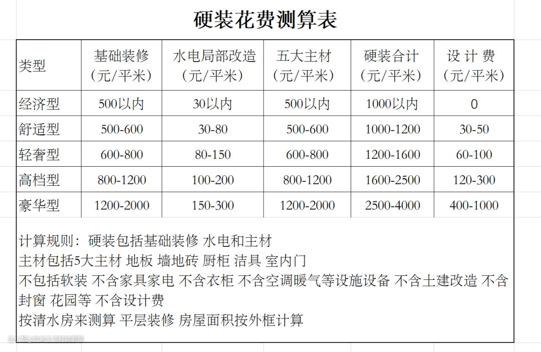 在这里着重说说硬装部分要花多少钱 :