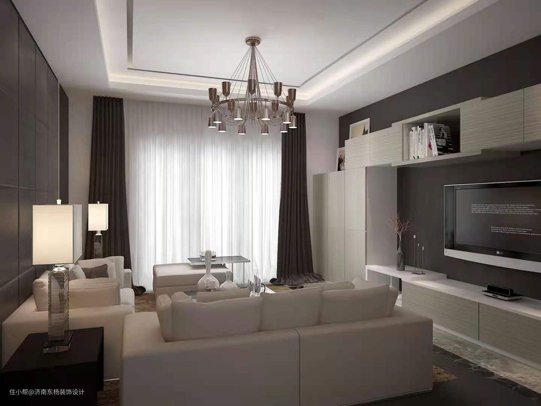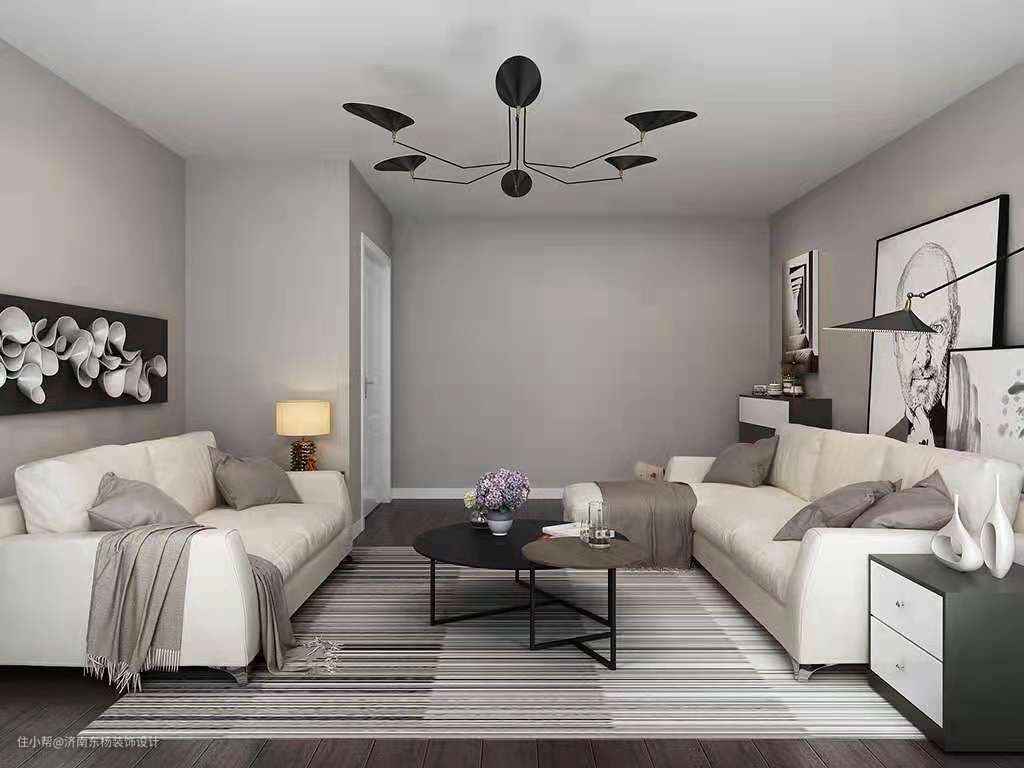 黑白搭配是经典配色之一,黑色深沉、神秘、稳重,白色活泼、优雅、大方,二者互补尽显主人优雅时尚品味。整体线条流畅大气,空间合理利用,满足您对家里储物需求,同时客厅空间视觉层次丰富。