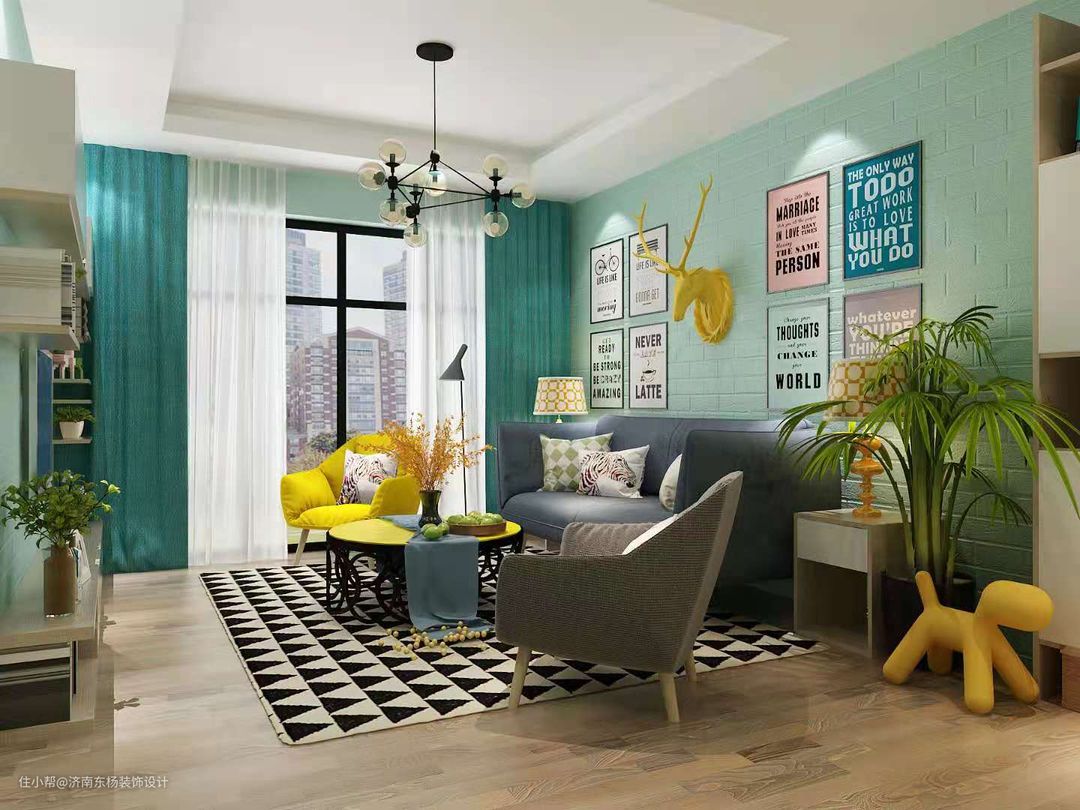 蓝色清新浪漫,用蓝色作为墙面颜色,与灰色、黄色家具搭配出一种独特的浪漫气息。明艳亮丽的格调非常适合都市潮人,他们多追求轻快慢生活,强调打造舒适空间,多重色彩搭配尽显高逼格。