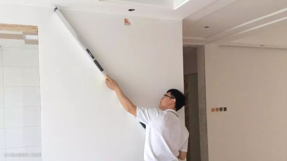 ●其次看墙面的平整度和垂直度,在室内光线充足的情况下,用2米靠尺靠近墙壁进行检测,看墙壁是不是平整。