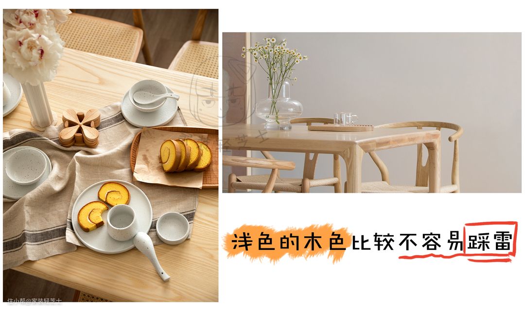 颜色:原木风对木材要求很高,需要带有木质纹理以及舒服的颜色。
