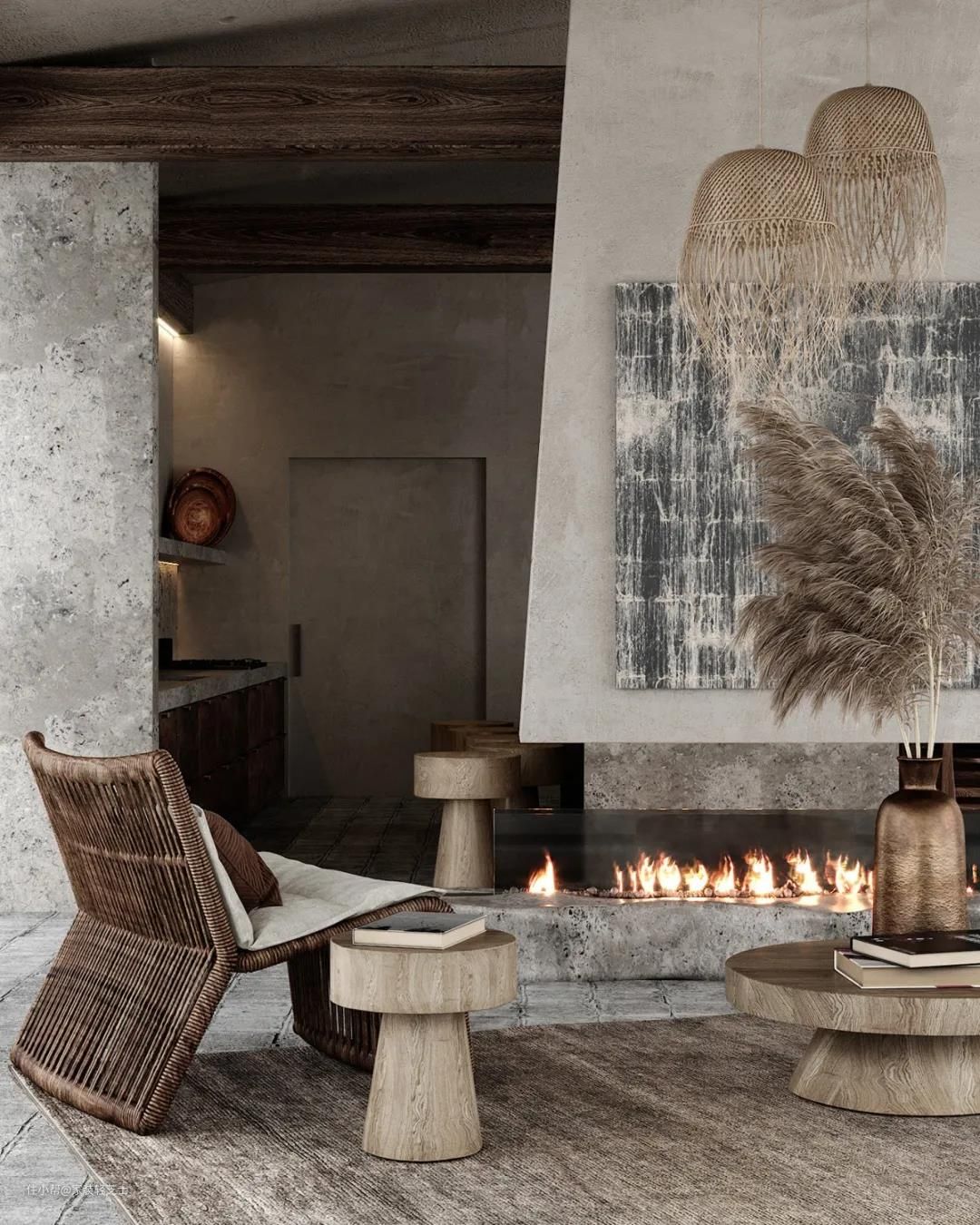 有小伙伴觉得侘寂风也和原木风很像。像这样