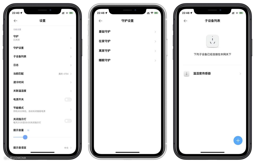 - 设置里则可以看到空调伴侣P3作为Zigbee网关的一些功能,像守护设置,还可以添加Aqara各种智能子设备。