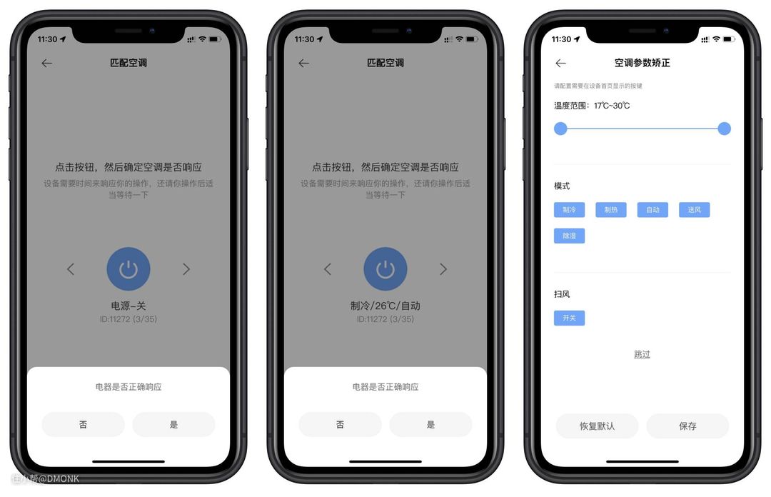 选择完品牌然后进行红外遥控的匹配,根据提示操作即可,匹配完成后保存。