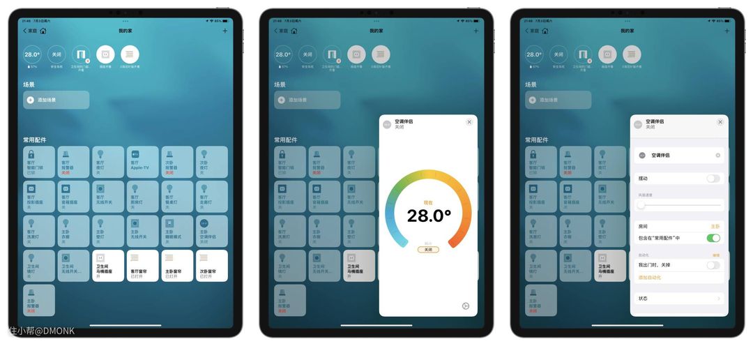 实际使用下来Aqara空调伴侣P3也是非常好用的,通过小爱或者Siri语音控制,完全解放了双手,以后开关空调再也不用去找遥控器了。设置对应的场景模式,一键/一句话启用,对需要抱孩子的宝妈和宝爸来说真的方便了好多。再搭配HomeKit的地理围栏,以后回家和出门就再也不用担心忘记开关空调了。
