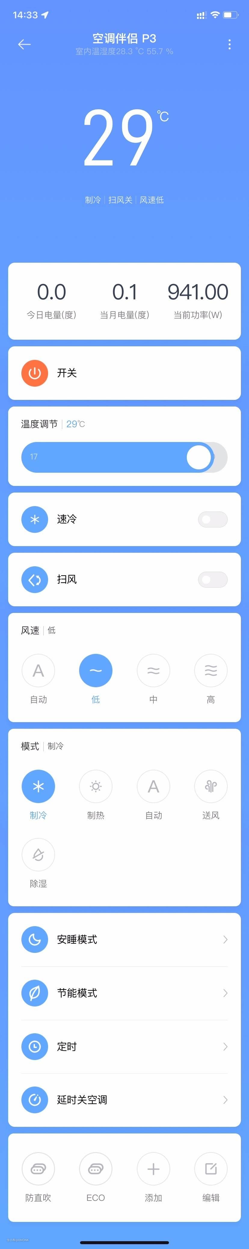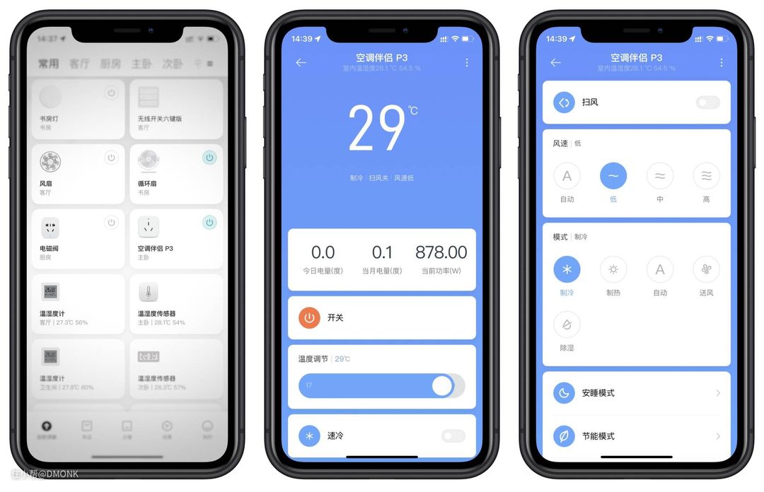 - 自带功率监测和电量统计功能,对空调的耗电情况一目了然。