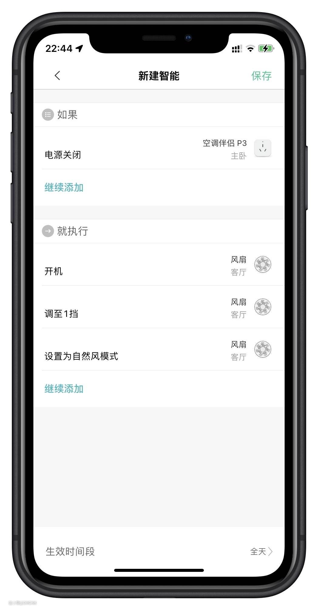 如果到了更热的时候,可以把空调伴侣P3与米家风扇作为智能联动,在夜间定时关闭空调之后,自动打开米家风扇吹风,即保证身体健康,又能防止被热醒。