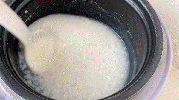 ③ 起床后开锅直接就是煮好的大米粥,大宇二合一饭煲电压力锅煮粥真的很棒,粥米全部都是开花的,一开锅米香四溢。