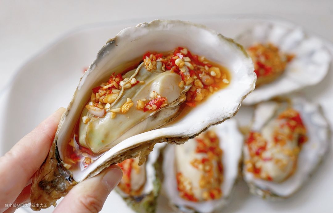 最后把蘸料均匀的撒上去,尽情享用吧!让蚝和酸辣的酱汁在口中肆意妄为,好吃到怀疑人生!