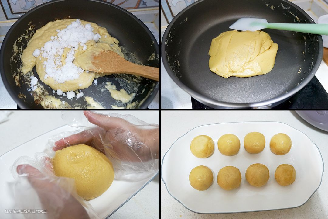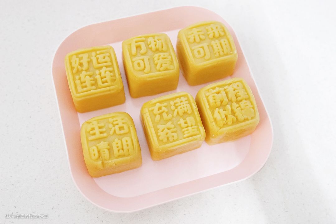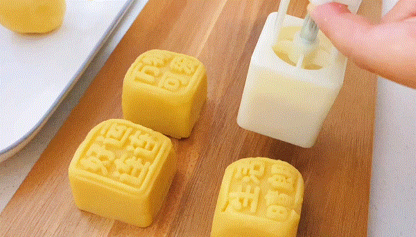 ⑥ 分成50g一个的小团子,放入模具中,压膜即可。