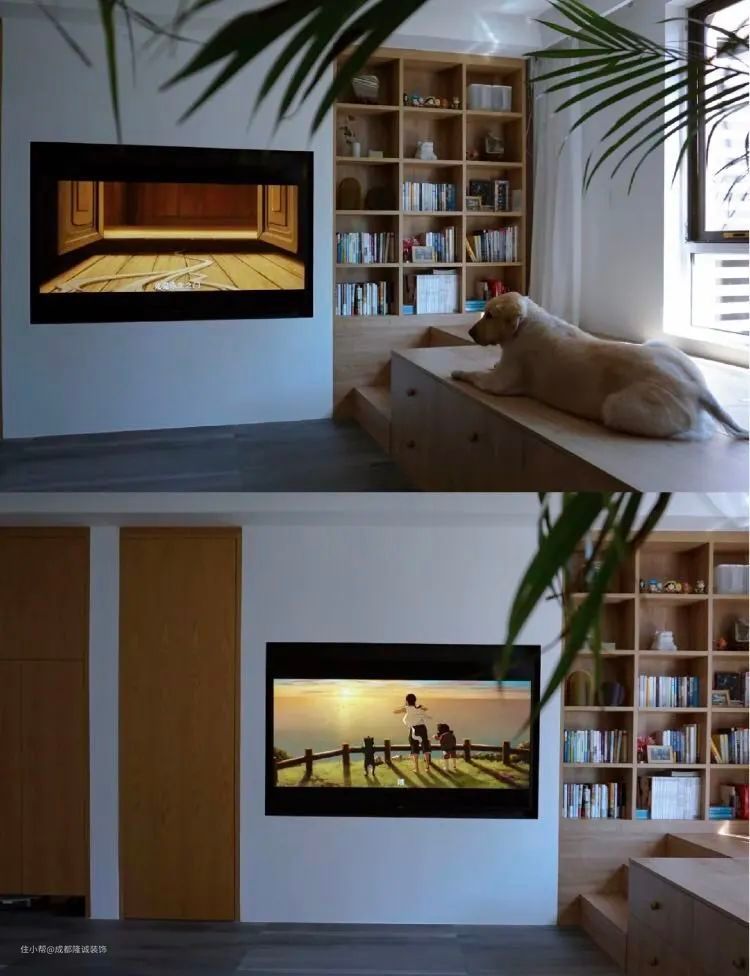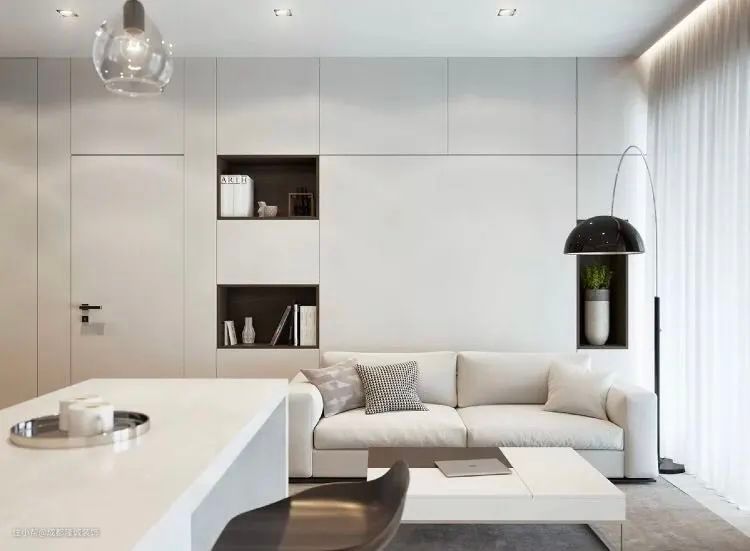 在客厅里面打造一个壁龛,可以做多重的设计,尤其是摆上一些工艺品,立马提升整个家的艺术品位。当然也可以非常实用的用来做收纳。