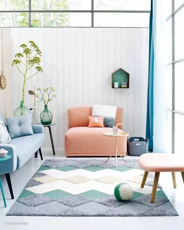 小地毯大学问,如果你只是简单地觉得地毯好看就买回家,回头放上去造成混搭奇怪的效果可要哭死。小莱提醒,一定一定要按照客厅风格选择地毯,无论你多喜欢那块地毯,不适合就要勇敢放弃!一块地毯拉低整个客厅颜值,简直不能忍!