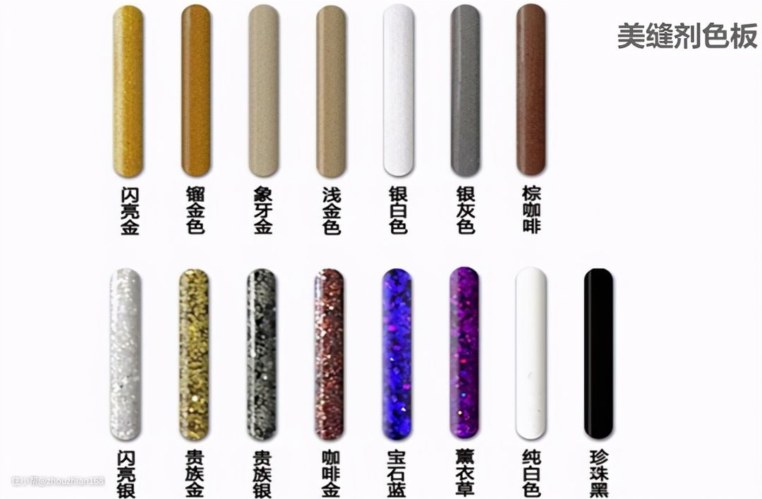 3、美缝剂:瓷砖填缝剂的升级产品,更具装饰性和实用性,色彩丰富,具有光泽,更加自然细腻。