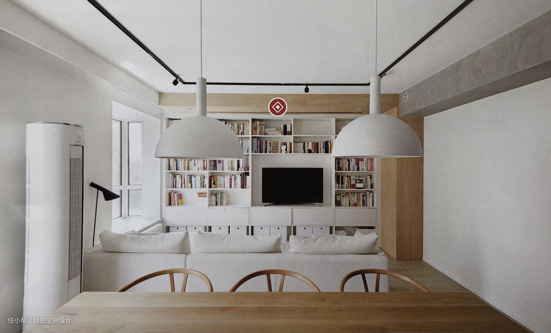 - 整墙白色书柜营造文艺的空间氛围