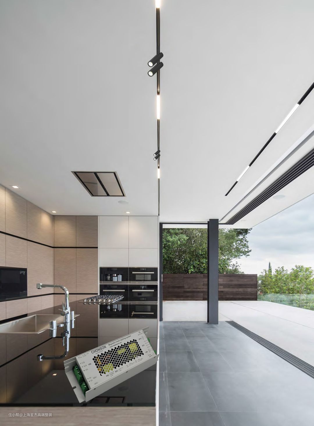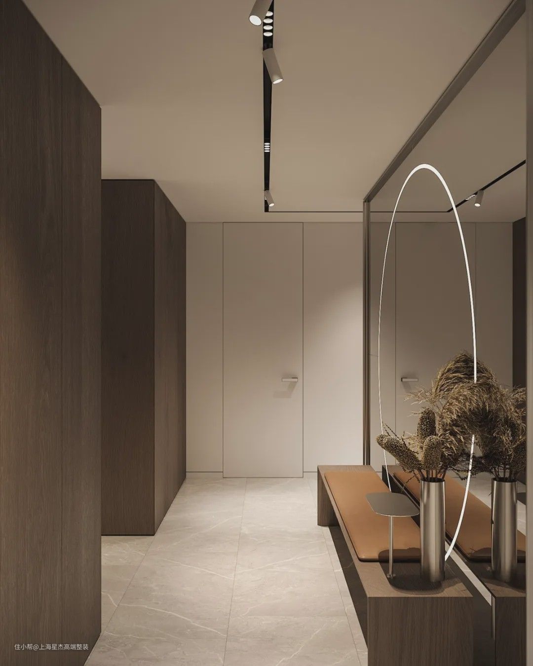 2、如果不想选择嵌入式灯具的设计,也可以选择外置的明装灯具来营造无主灯的氛围。这里建议选择轨道灯,如果预算充足的话,还可以选择磁吸轨道灯,好处就是可自由搭配多种色温、照度及各种角度的射灯,提升空间品质。